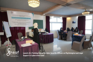 Today, in the interim capital Aden, a specialized training course was launched on psychological and legal support in investigations related to cybercrimes, particularly electronic blackmail. The course targets officers of the Aden Security Administration and is being implemented as part of the project “Online Justice for Women in Yemen: Brave Women.”