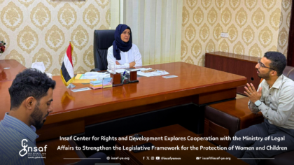Insaf Center for Rights and Development Explores Cooperation with the Ministry of Legal Affairs to Strengthen the Legislative Framework for the Protection of Women and Children A delegation from the Insaf Center for Rights and Development met with H.E. Ishraq…